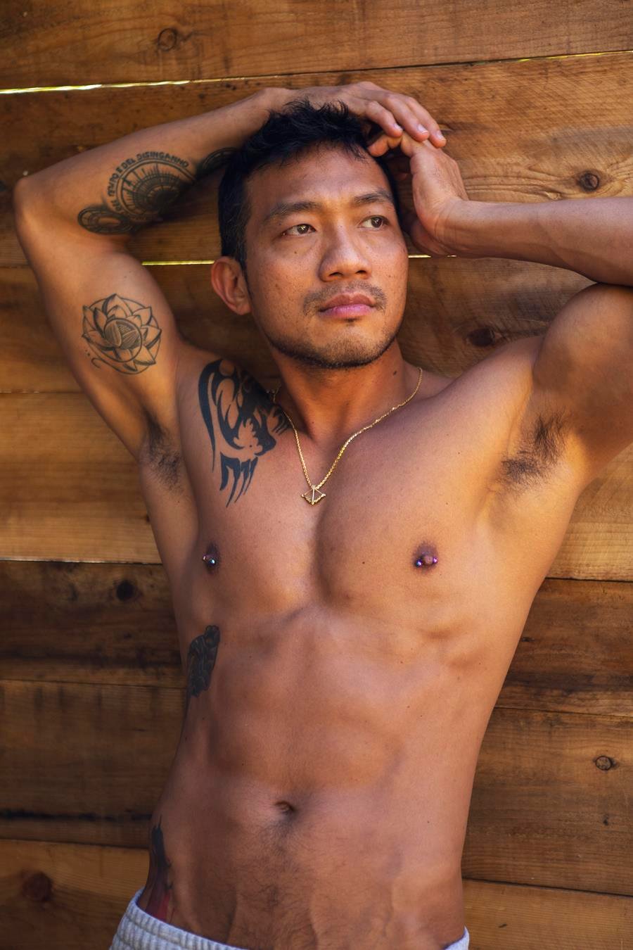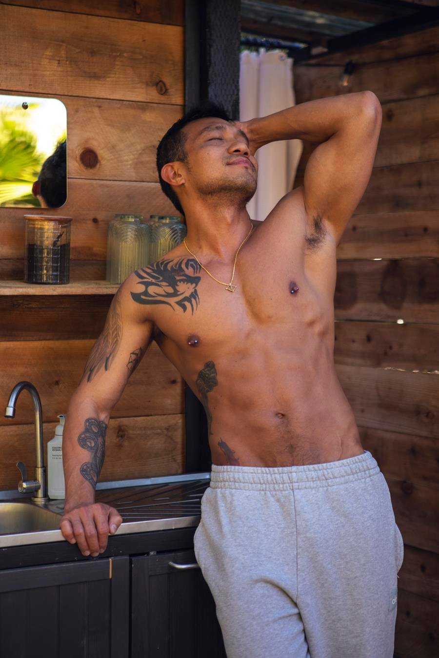 O fotógrafo Xingyu She, do Xing Photo Studio, divulgou com exclusividade imagens do ensaio com o modelo Andrew Truong. O clima segue ousado e carregado de sensualidade, com Andrew posando de forma marcante em meio à natureza, explorando a atmosfera de um chalé de madeira e o campo ao ar livre em um contraste provocante entre cenário e corpo.