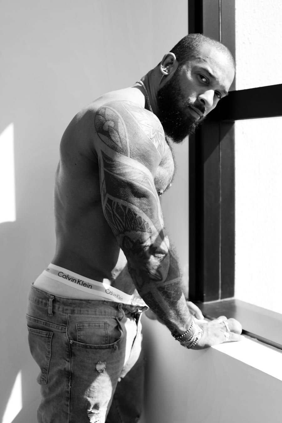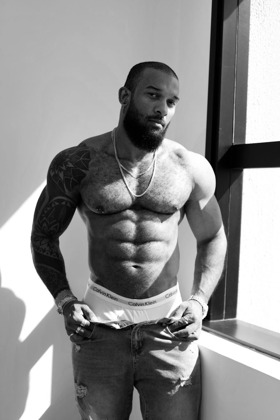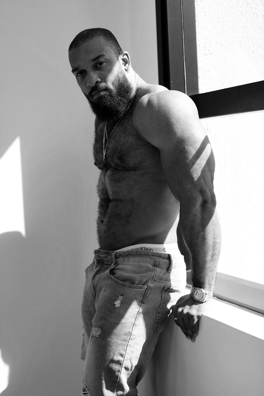O modelo e empregado público Heder Alvez protagoniza um ensaio que exala força e sensualidade. Sob as lentes do fotógrafo Jairo César Filho, o goiano surge em imagens ousadas, alternando entre a calça jeans e momentos em que aparece apenas de cueca, revelando o corpo sarado, peludo e coberto por tatuagens.