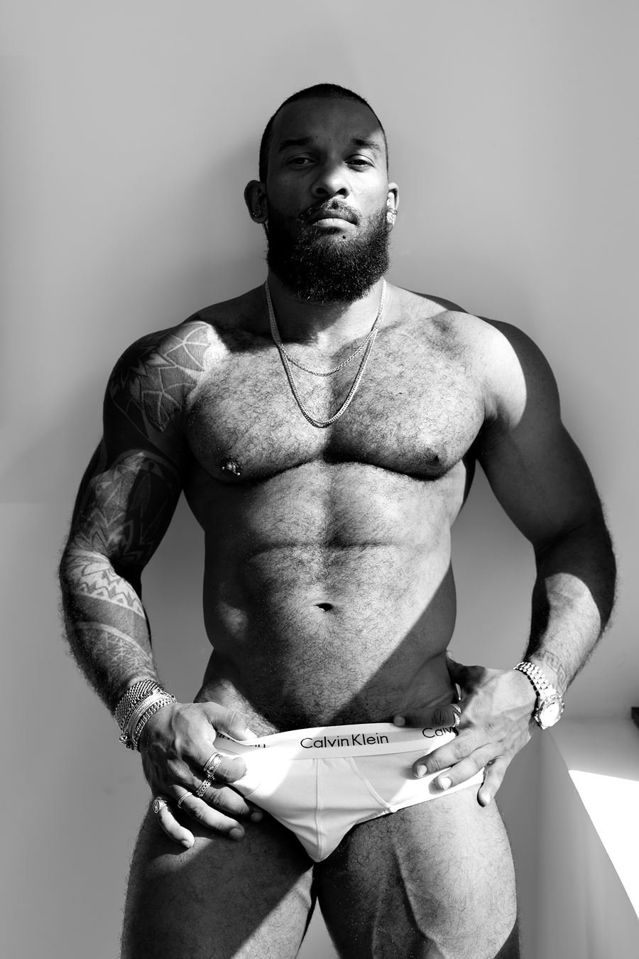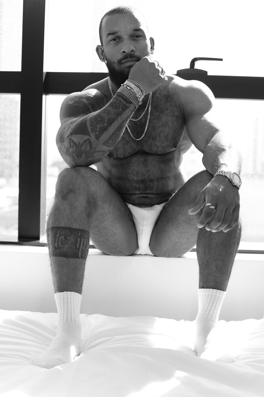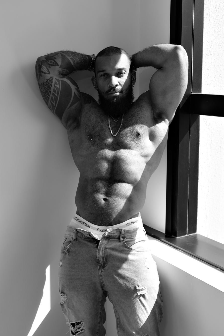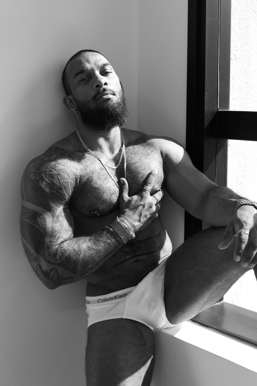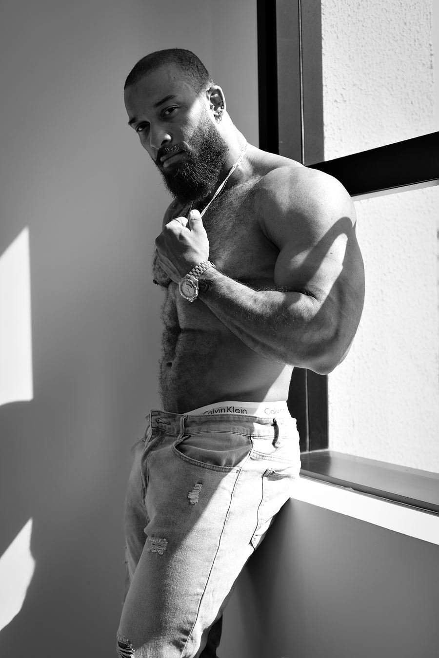 O modelo e empregado público Heder Alvez protagoniza um ensaio que exala força e sensualidade. Sob as lentes do fotógrafo Jairo César Filho, o goiano surge em imagens ousadas, alternando entre a calça jeans e momentos em que aparece apenas de cueca, revelando o corpo sarado, peludo e coberto por tatuagens.