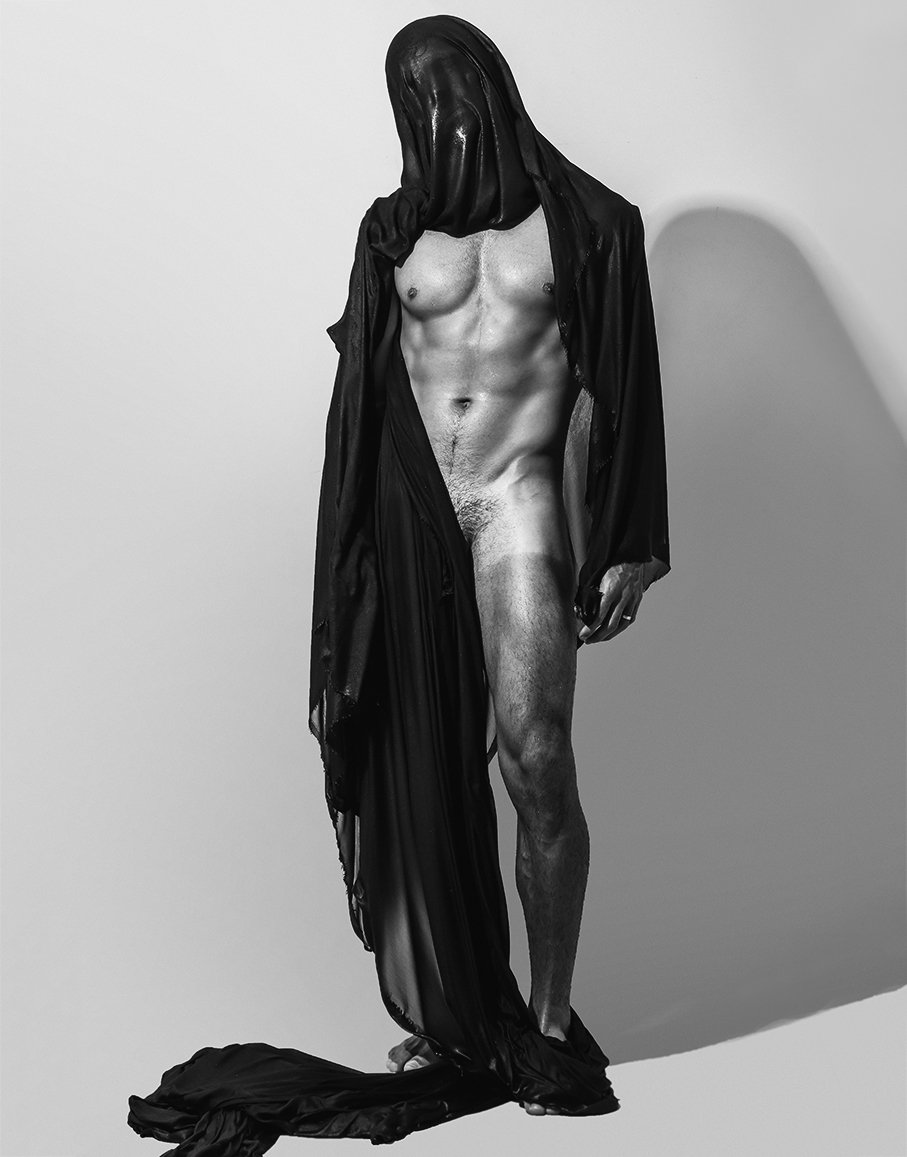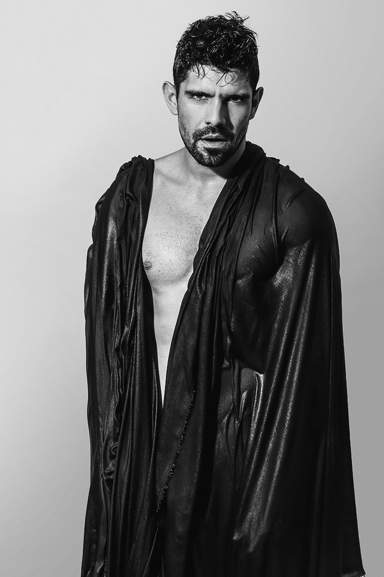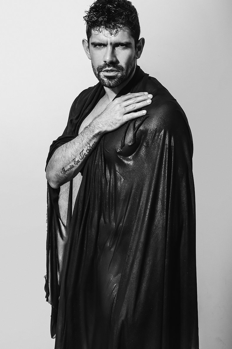 Nas imagens, os irmãos posam totalmente nus, apenas cobertos por um tecido escuro molhado que evidencia as formas musculares e cria um jogo de luz e sombra extremamente estético. O contraste entre a delicadeza do tecido e a força corporal realça a sensualidade com elegância.
