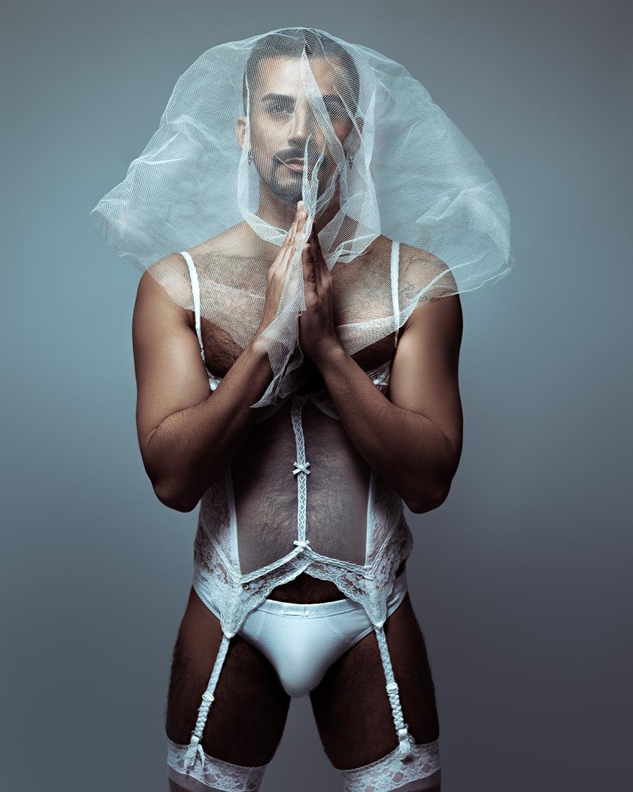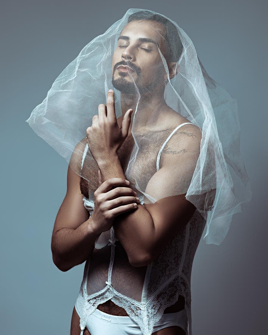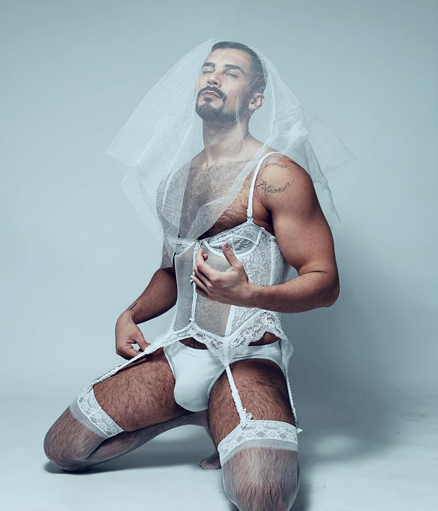 O influenciador e criador de conteúdo Rafael Mello estrela um ensaio sensual e ousado fotografado por ALCA, em Porto Alegre. Inspirado no visual icônico de Like a Virgin, de Madonna, ele aparece vestido de noiva, com véu e cueca branca, em uma releitura provocativa com atmosfera disco.