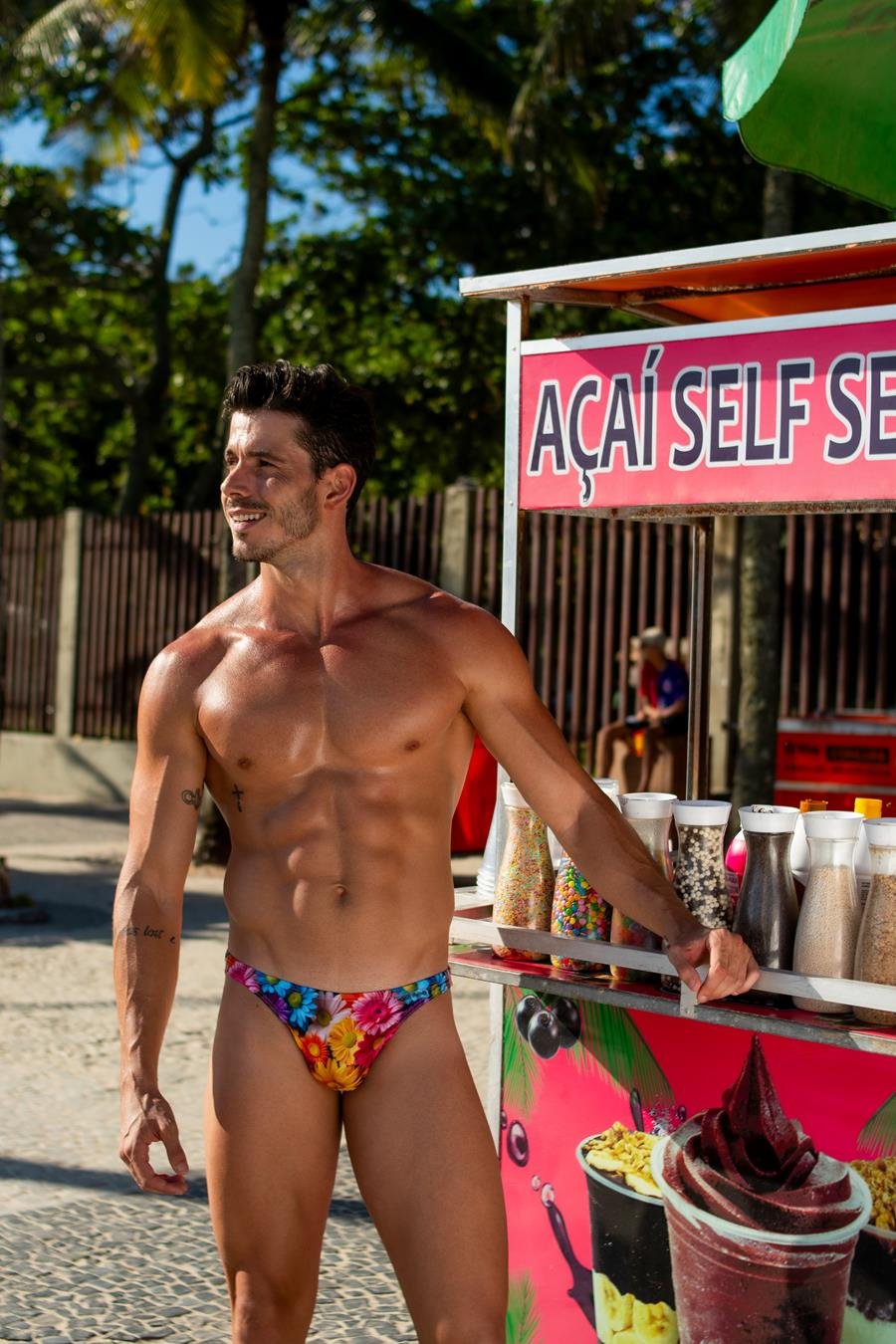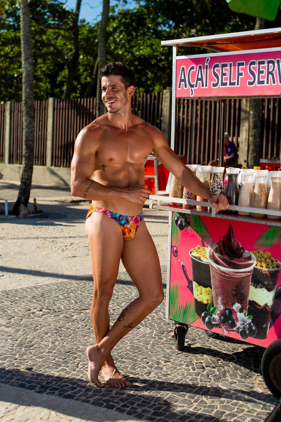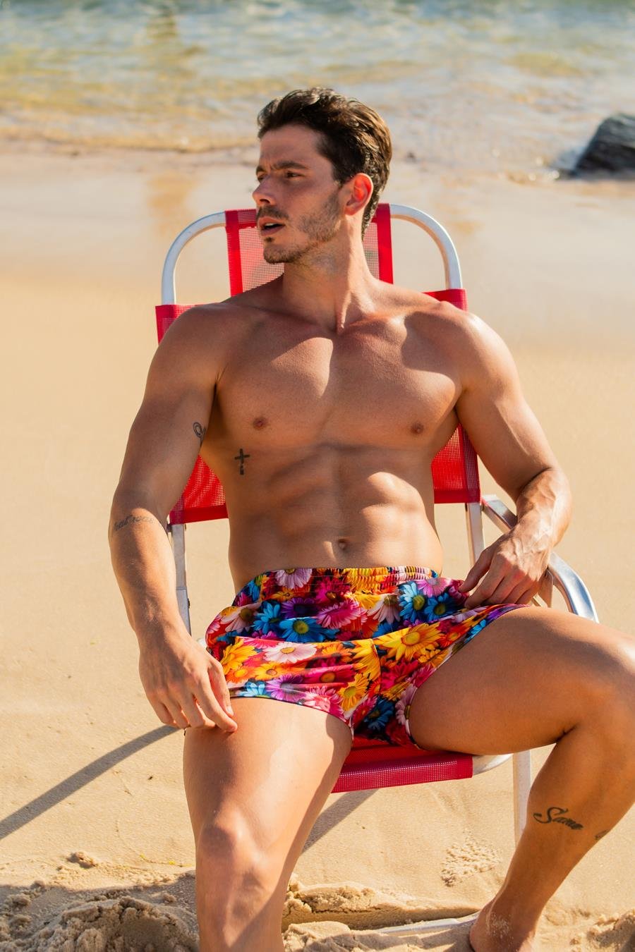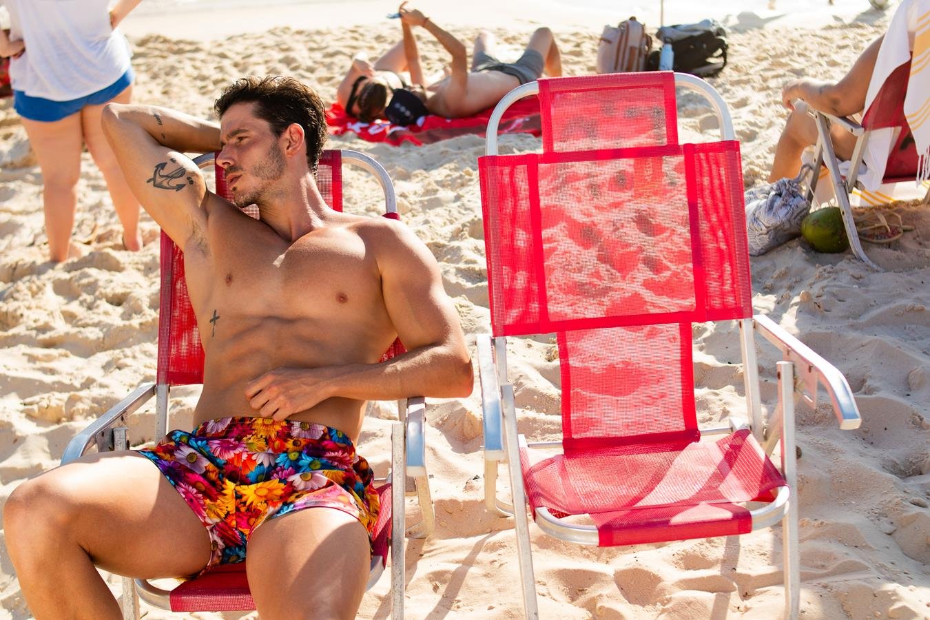 Dono de um corpo definido, o modelo exibiu sua boa forma durante as fotos realizadas pelo fotógrafo Beto Urbano no litoral do Rio de Janeiro.