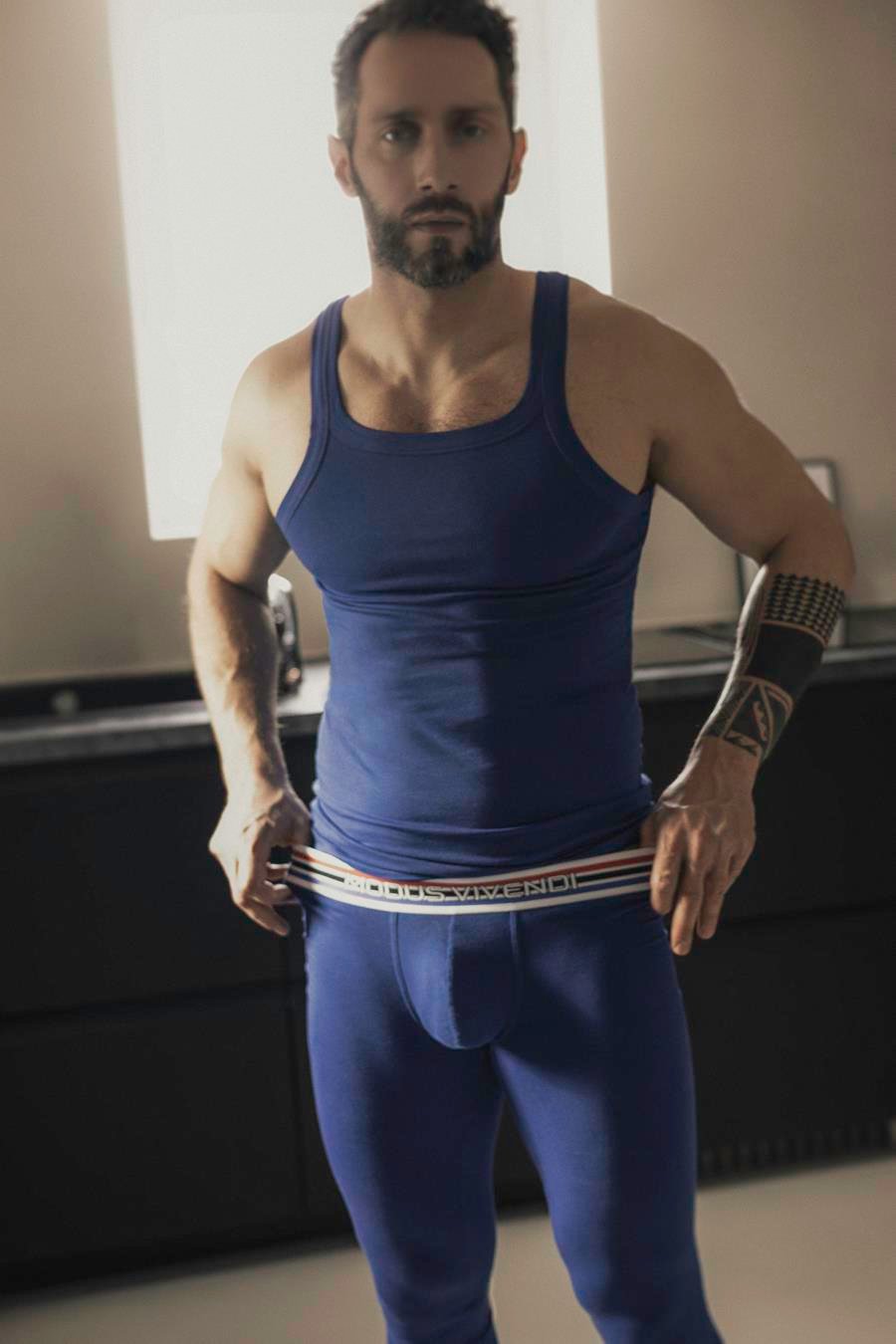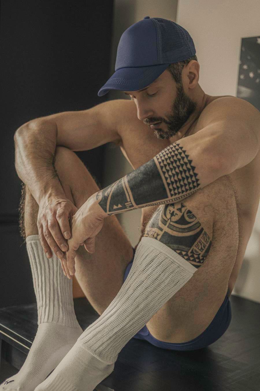 O modelo Jeremy Douillé protagoniza um ensaio que traduz o conceito de Heritage in Motion em Paris. Nos cliques, o modelo aparece com peças em algodão premium de malha, que evidenciam conforto, flexibilidade e performance no dia a dia.
