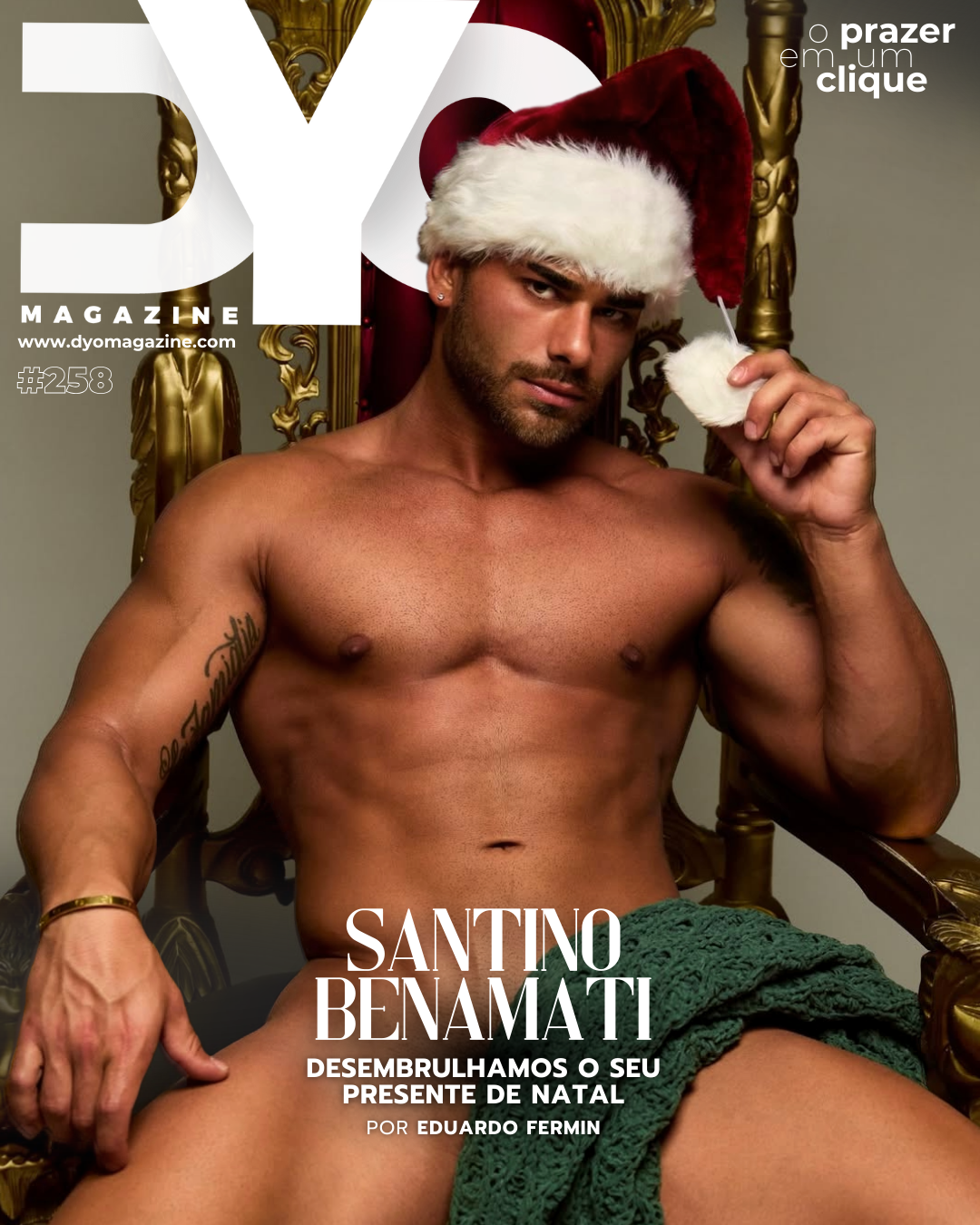 A DYO Magazine eleva a temperatura das festas com um ensaio provocante, ousado e totalmente sem pudor. O clima natalino ganha uma leitura sensual, onde atitude, presença e desejo falam mais alto do que qualquer fantasia. Santino Benamati surge confiante, intenso e sem medo de se mostrar.