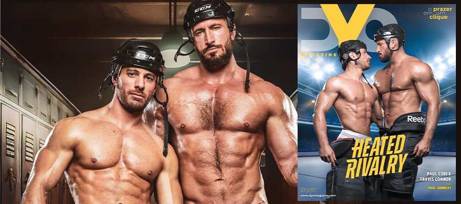 Rivalidade ardente! Paul Codi e Travis Connor estrelam um ensaio sensual ambientado no universo do hóquei, com clima de embate e forte tensão sexual. Fotografados por Paul Jamnicky, os dois aparecem em cenas intensas e com muita provocação. Uniformes abertos, contato direto e expressões firmes constroem uma sequência de imagens ousadas, com foco claro na química do casal. Os cliques foram divulgados com exclusividade na DYO Magazine.