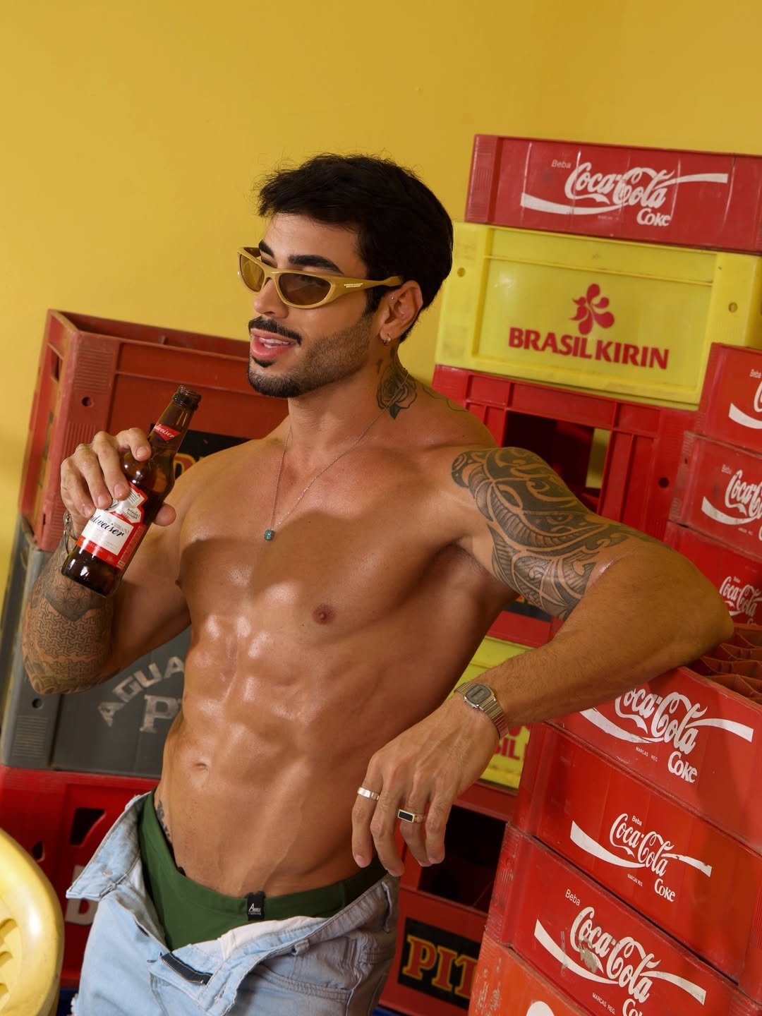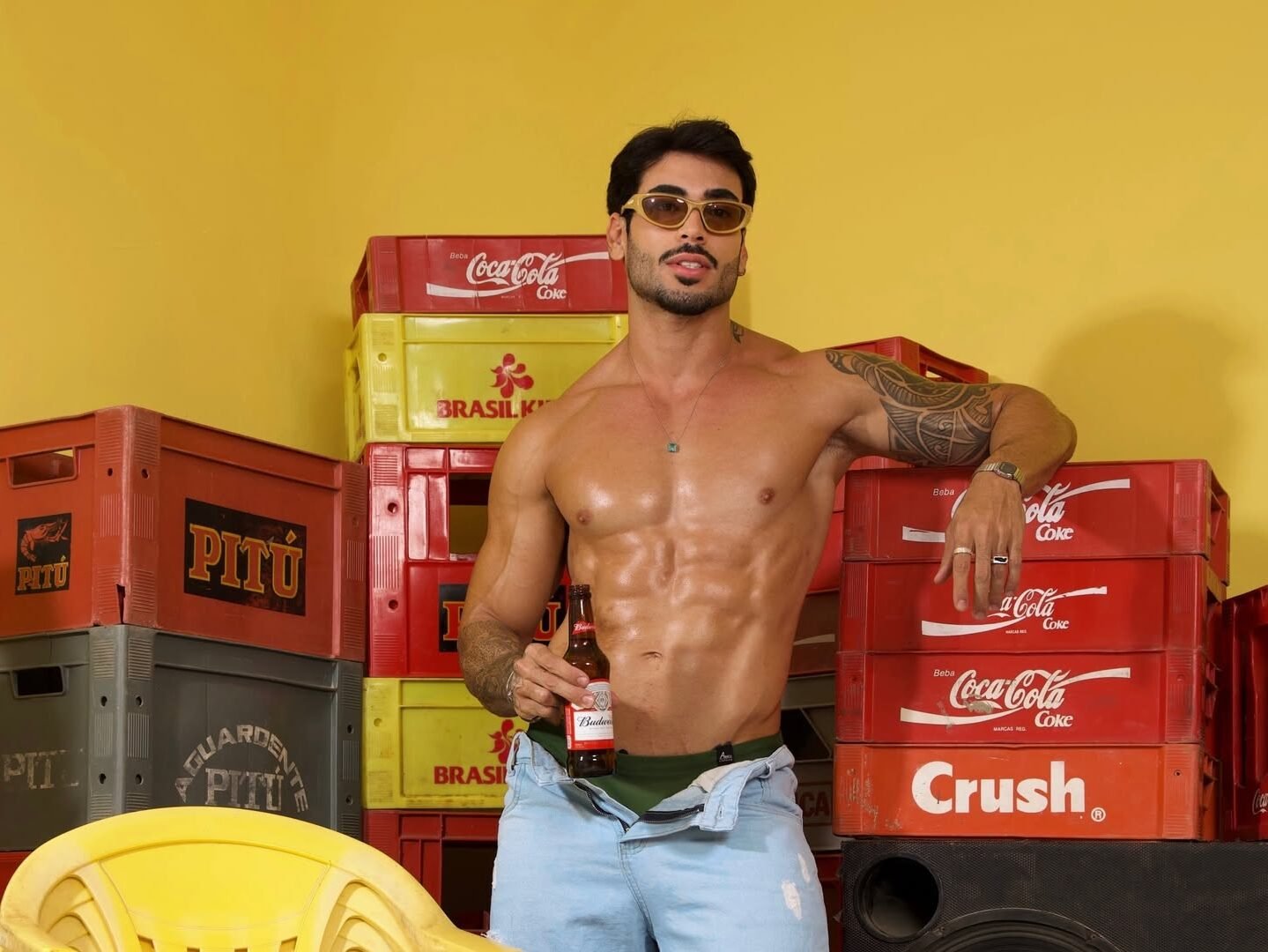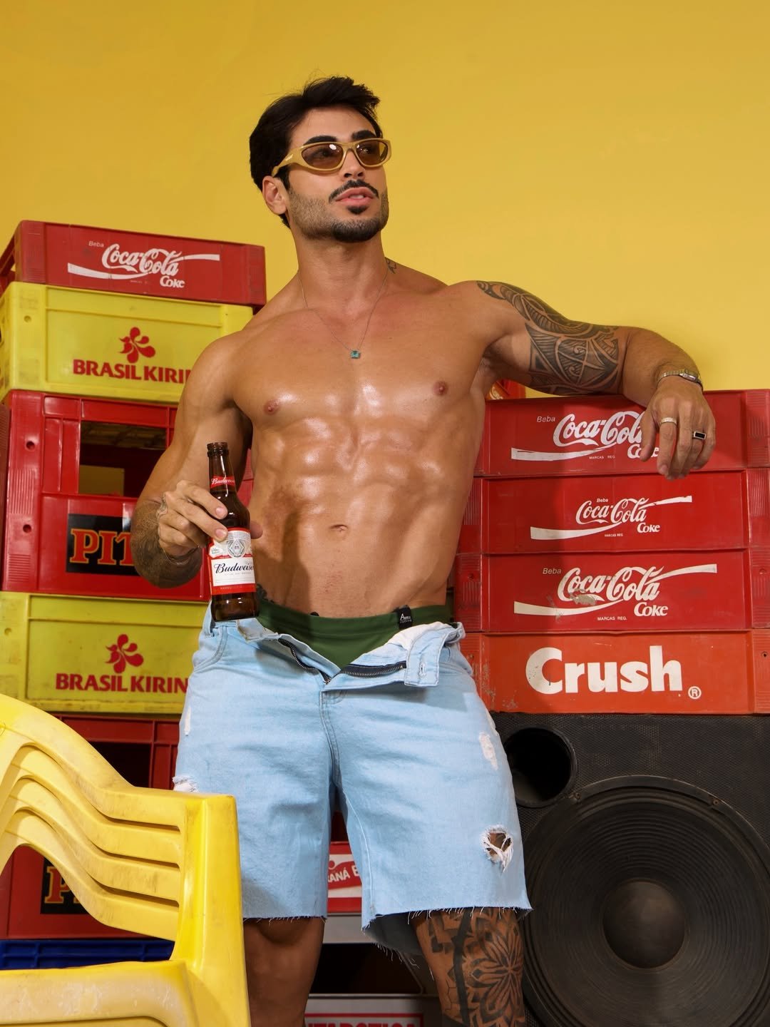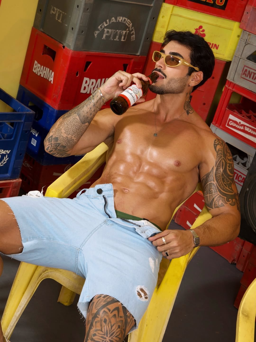 O influenciador Pedro Marinho voltou a chamar atenção nas redes sociais ao divulgar novos cliques de um ensaio em clima de bar. Nas imagens, o modelo aparece de sunga, com o tanquinho em evidência, bebendo uma cerveja gelada, enquanto o cenário com engradados ao fundo reforça a atmosfera urbana e descontraída.