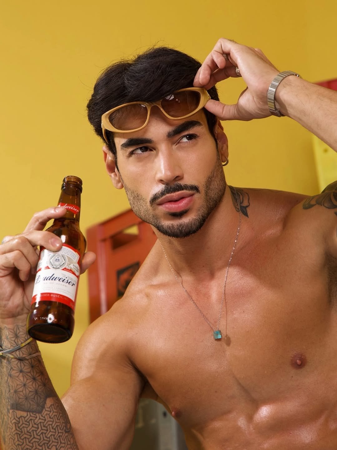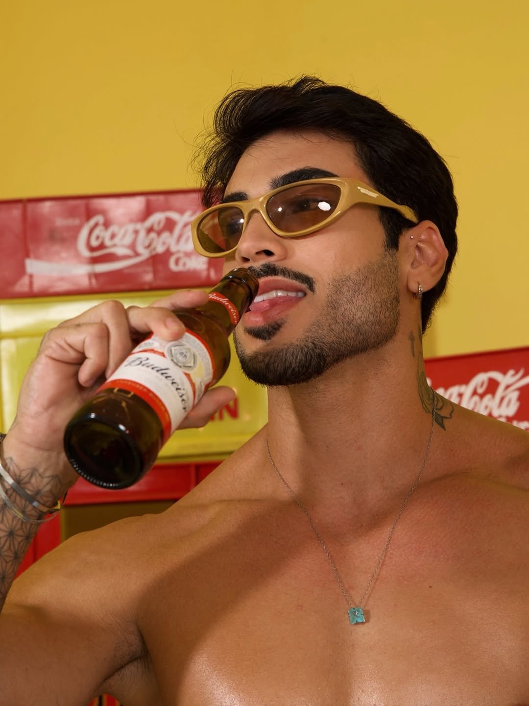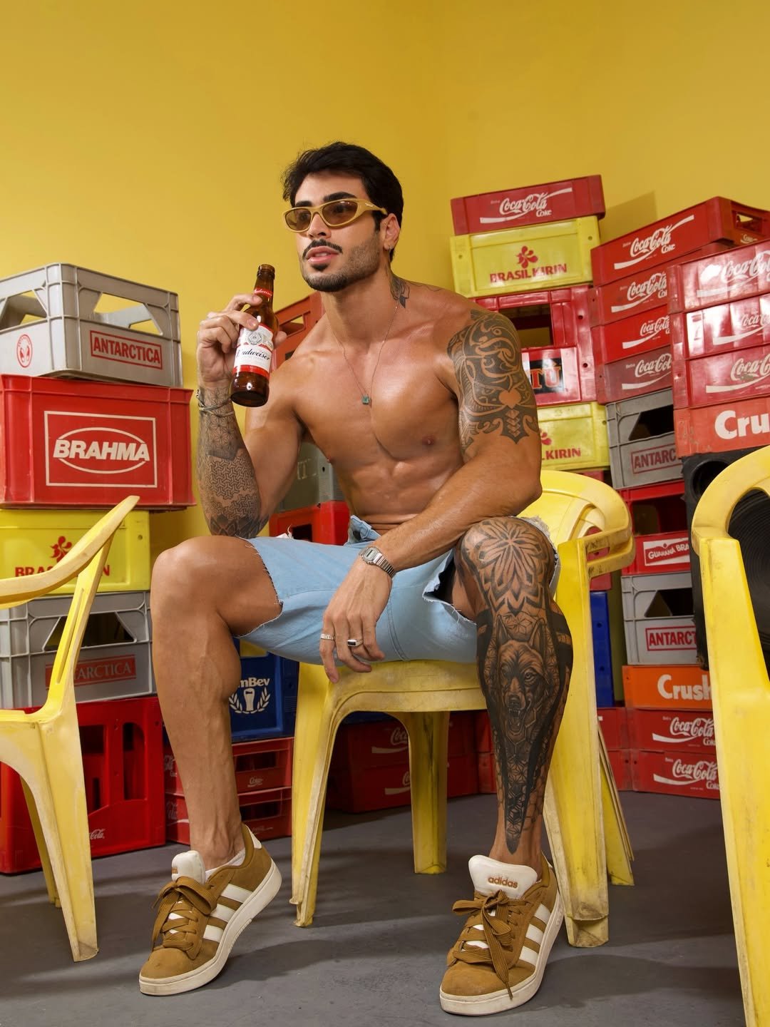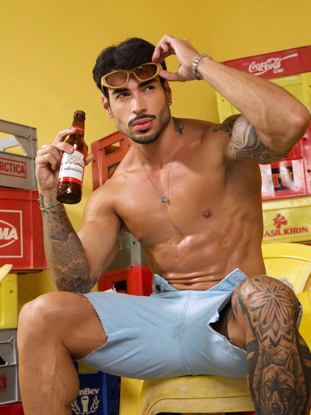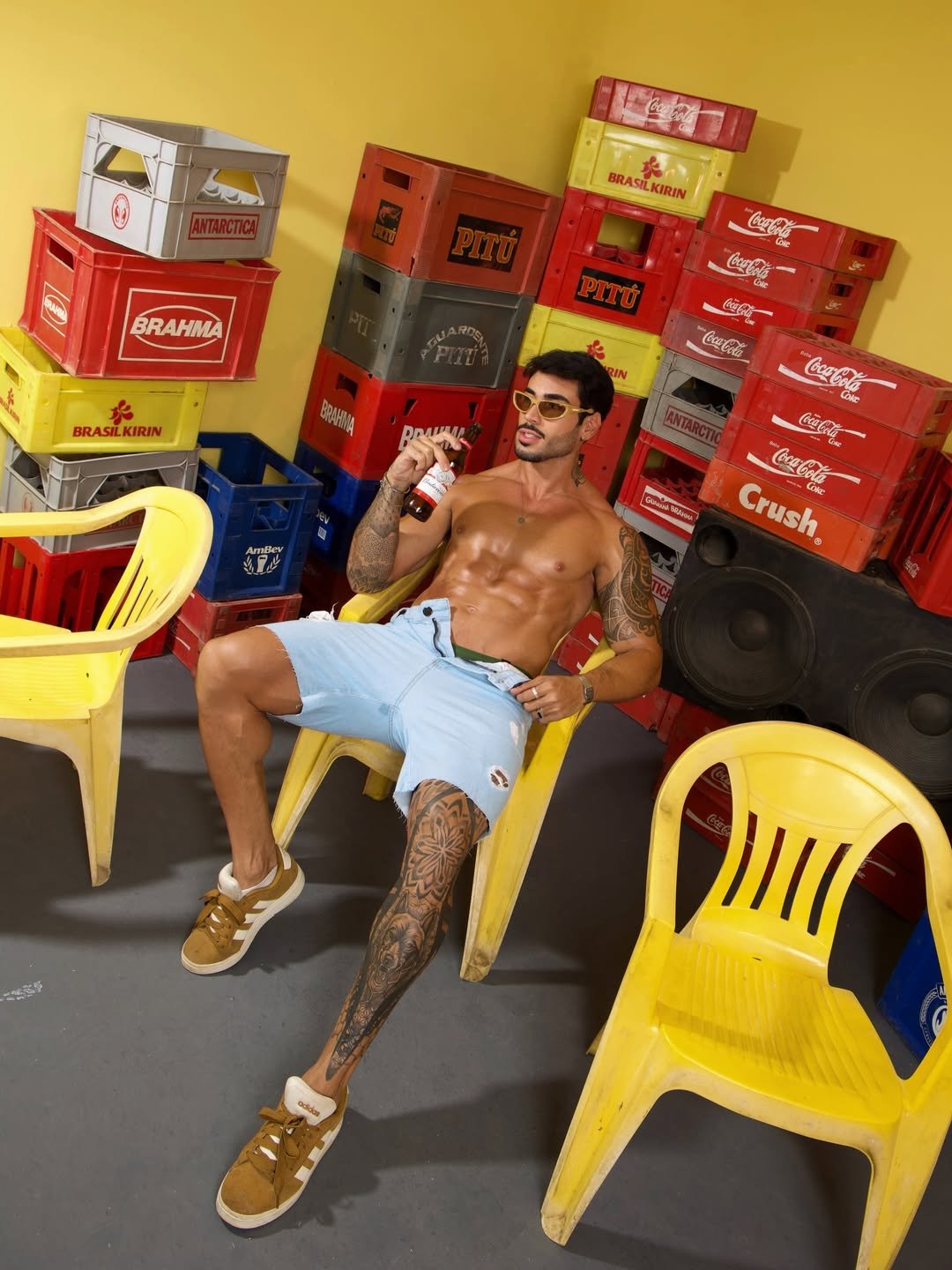 O influenciador Pedro Marinho voltou a chamar atenção nas redes sociais ao divulgar novos cliques de um ensaio em clima de bar. Nas imagens, o modelo aparece de sunga, com o tanquinho em evidência, bebendo uma cerveja gelada, enquanto o cenário com engradados ao fundo reforça a atmosfera urbana e descontraída.