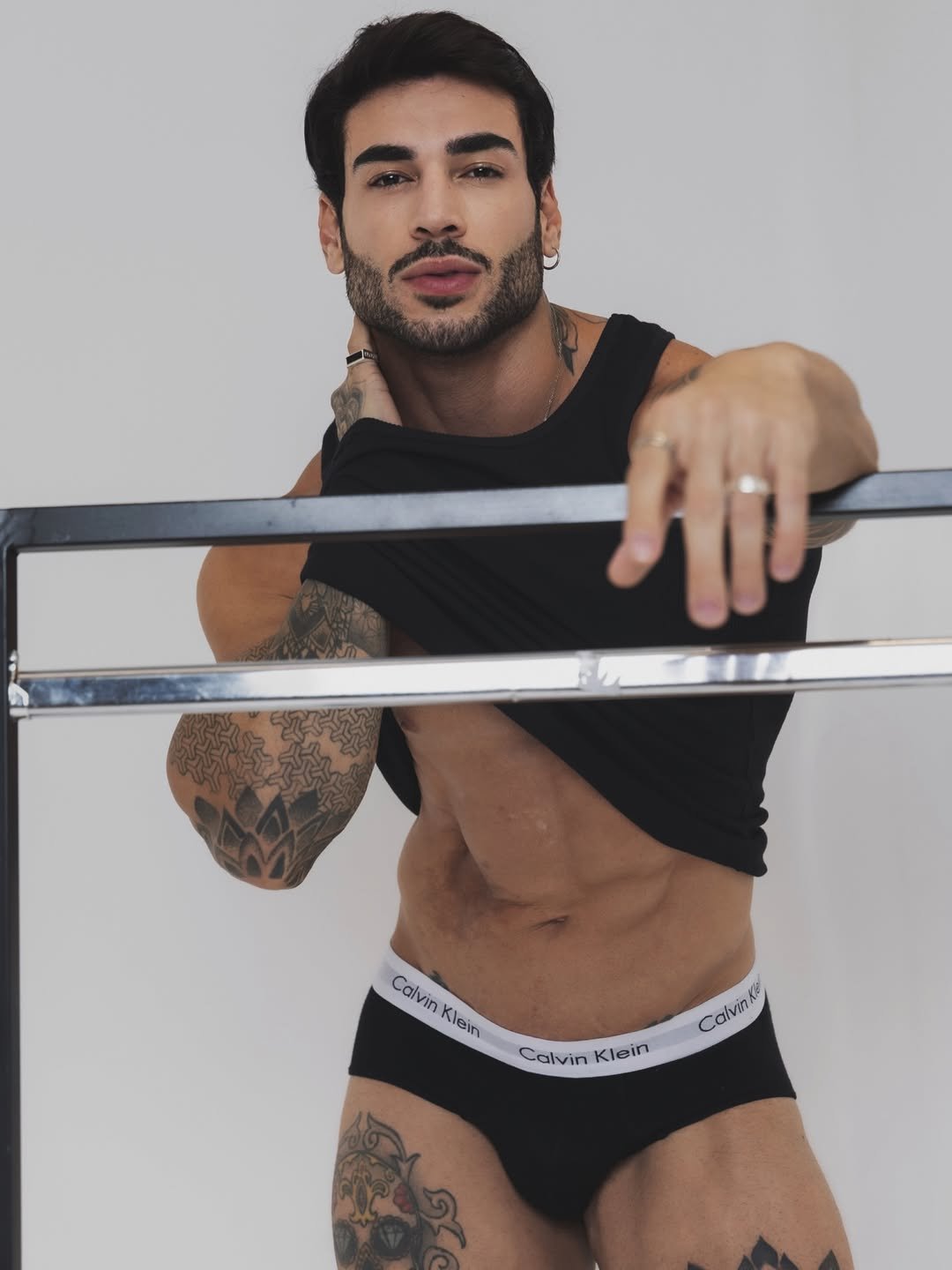 O influenciador Pedro Marinho chamou atenção nas redes sociais ao divulgar fotos de um ensaio em que aparece apenas de cueca preta. Com tatuagens marcantes, corpo definido e total naturalidade diante das câmeras, o alagoano deixou os seguidores impressionados com sua beleza e presença.