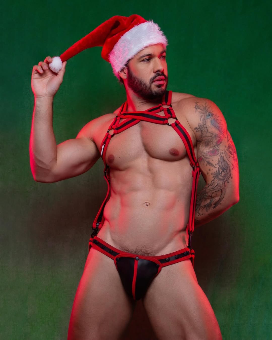 Já imaginou ganhar Jace Toned de presente no Natal? Essa foi a proposta da Timoteo Studio ao divulgar novas imagens do ensaio assinado pelo fotógrafo Davide Laffe. Nos cliques, o criador de conteúdo aparece usando gorro de Papai Noel, harness e jockstrap, em cliques que misturam o clima festivo de dezembro com ousadia e sensualidade.