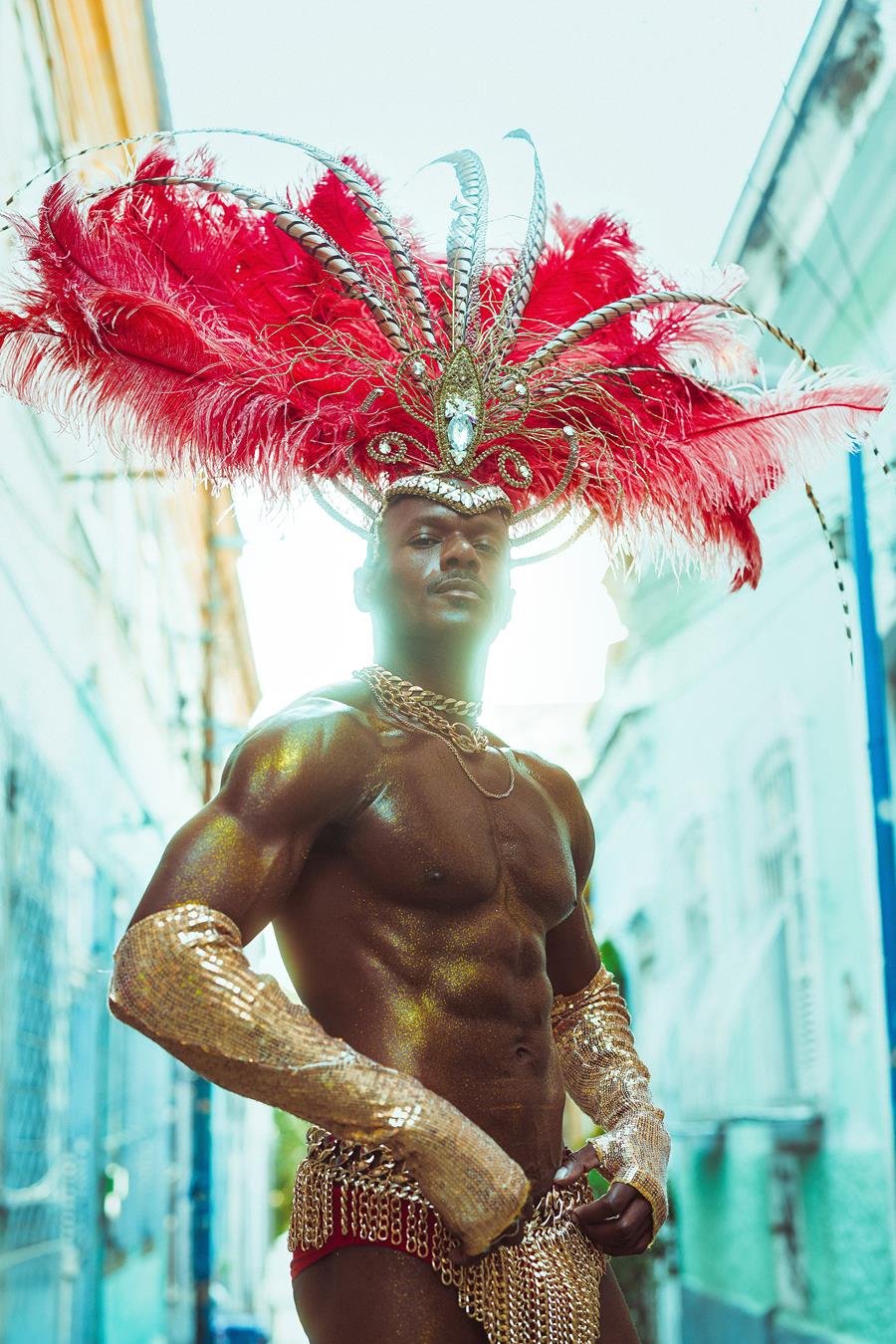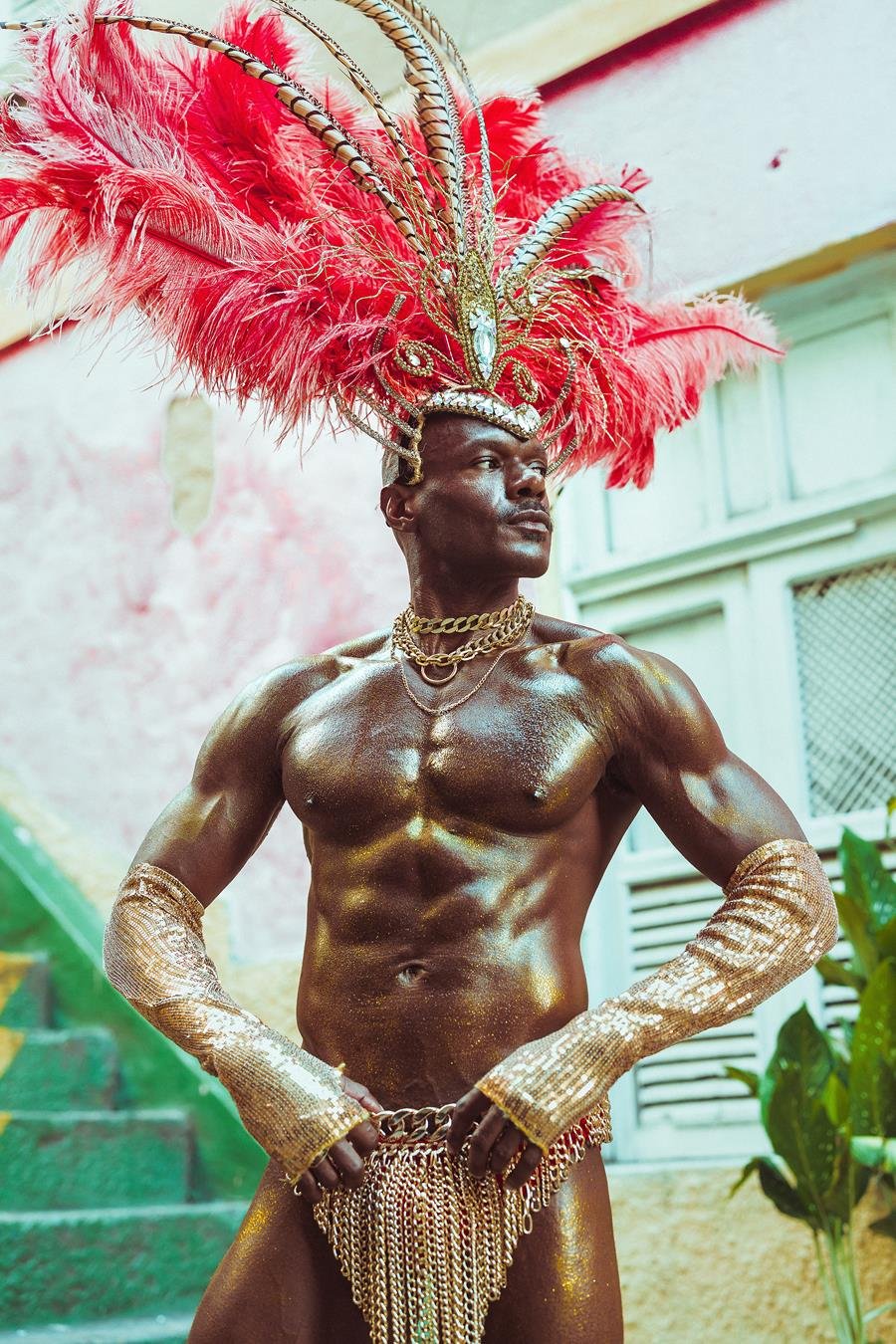 Rhyheim Shabazz aposta em brilho e paetês em ensaio inspirado no Carnaval