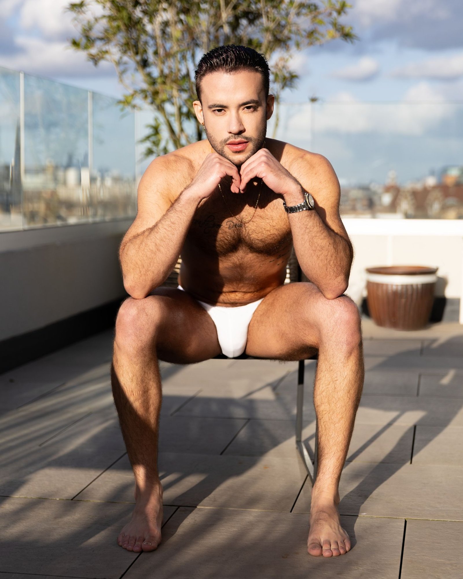 Vitor Carvalho mostrou todo seu lado sensual e provocante em um ensaio clicado pelo fotógrafo Alberto Casu em Londres, na Inglaterra. Em excelente forma física, o modelo surge usando apenas uma cueca branca, evidenciando suas formas e presença marcante.